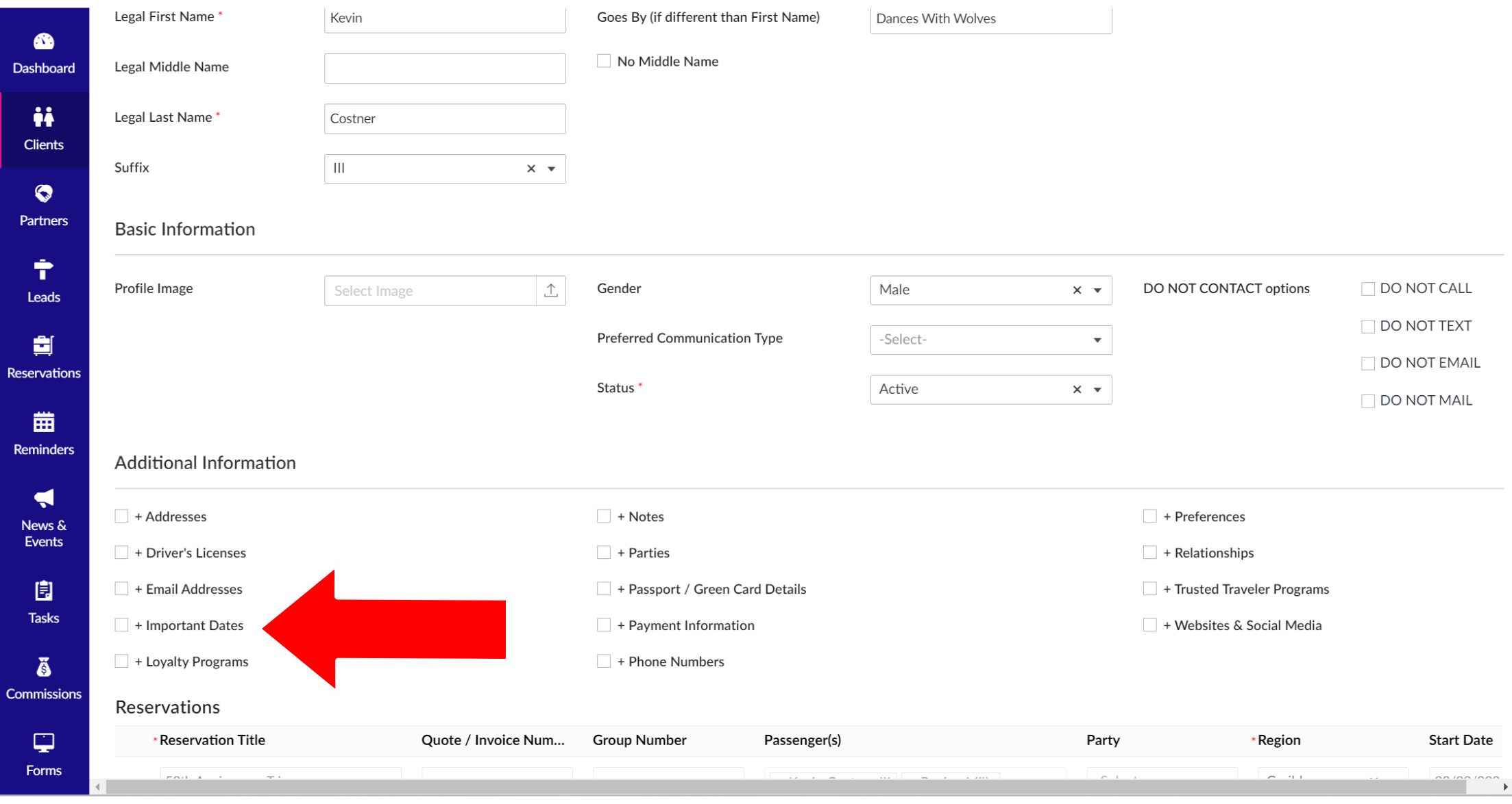 Adding Client Important Dates