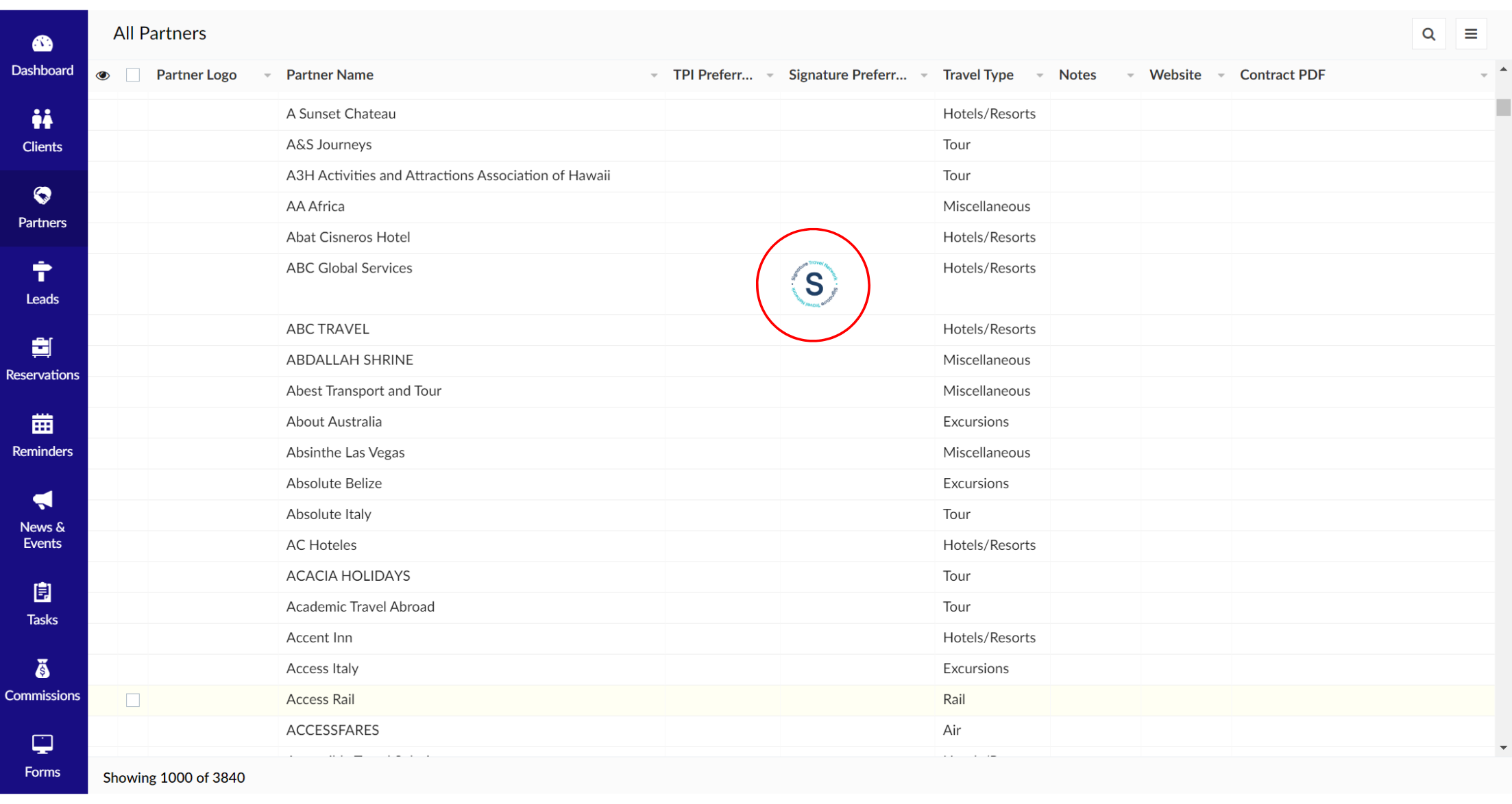 2. A List of Partners will be displayed on the landing page. To determine if a Partner is Signature Preferred, they will be notated with the Signature logo under the "Signature Preferred?" column.